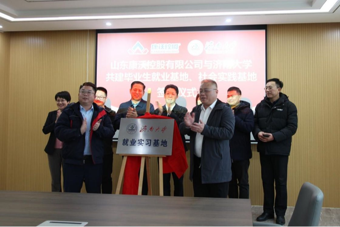 在山东康沃控股有限公司,朱中华对黄加栋一行的到来表示欢迎,介绍了鲁西新区产业布局、重点产业发展等情况,希望双方进一步开展深入合作。黄加栋表示,济南大学将以此次揭牌为契机,充分发挥自身优势,结合企业特色,加强产教融合,为鲁西新区高质量发展作出新的贡献,为毕业生提供更多的就业机会和更广阔的发展空间,实现互惠互利,合作共赢。座谈会上,黄加栋与康沃控股有限公司董事长胡庆松共同为康沃控股有限公司与济南大学共建毕业生就业基地和社会实践基地揭牌。