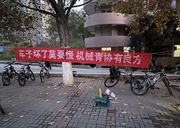 为践行社会主义核心价值观,弘扬“奉献、友爱、互助、进步”的志愿服务精神。11月22日下午,机械工程学院青年志愿者协会义务修车服务队于八食广场开展义务修车活动。