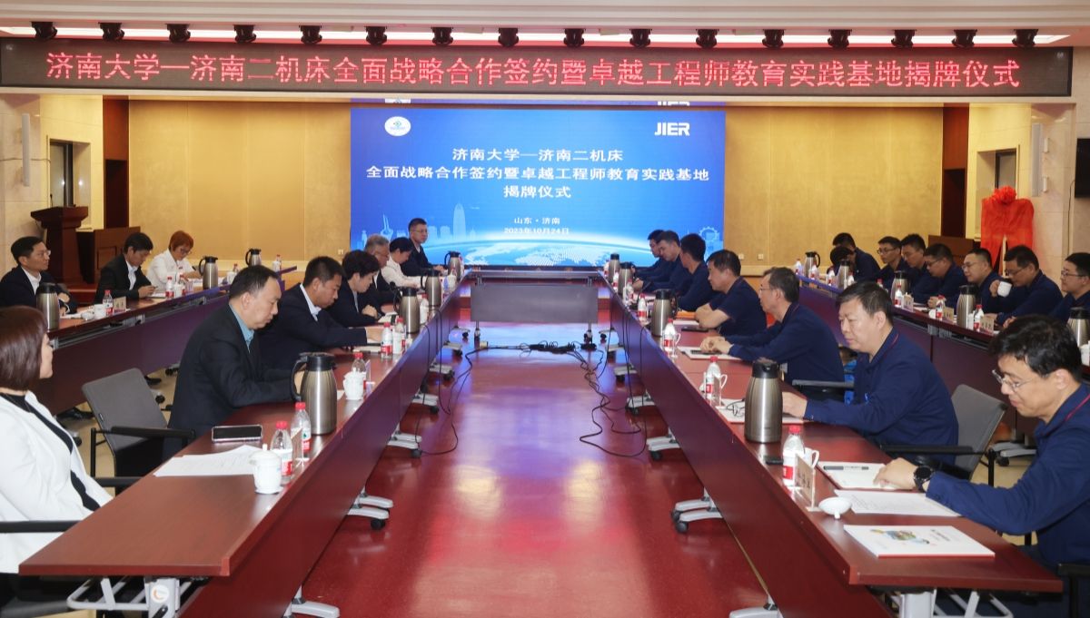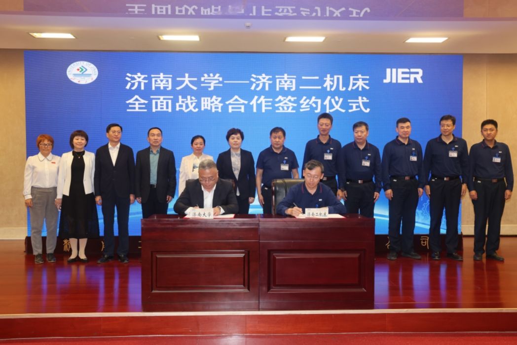 与济南二机床集团有限公司(以下简称济南二机床集团)全面战略合作签约暨卓越工程师实践基地揭牌仪式在济南二机床集团举行,学校党委书记刘春华,党委常委、副校长黄加栋,济南二机床集团党委书记、董事长张世顺,济南二机床集团党委副书记、董事任立伟,党委委员、副总经理、水果派解说