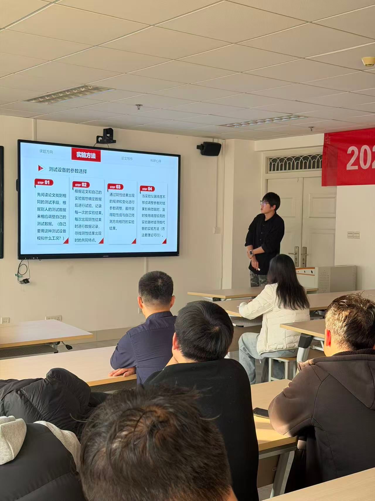 为进一步搭建研究生学术交流平台,分享科研实践经验,激发科研创新热情,助力研究生提升学术研究能力与综合素养,机械工程学院于2025年12月17日在机械楼A506成功举办第二届“卓越”研究生学术论坛。本次论坛邀请了荣获2025年研究生国家奖学金的丁言星、闫春成两位优秀研究生担任主讲人,学院研究生辅导员张畔全老师及研究生导师温道胜老师出席论坛。