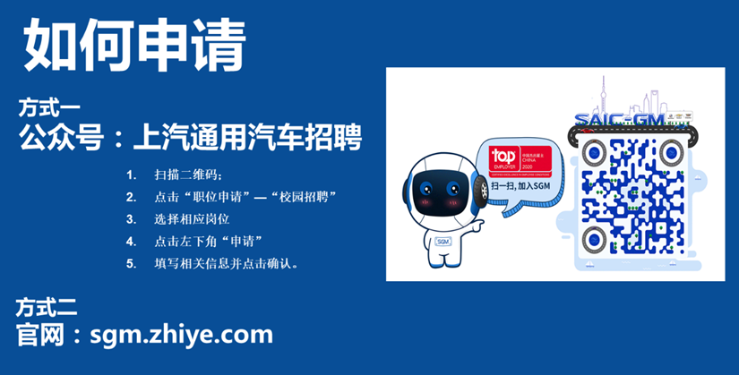 1. 上汽通用汽车有限公司网申系统(sgm.zhiye.com)→校园招聘→所属公司“上汽通用东岳汽车有限公司”→ 选择“2022届上汽通用东岳基地招聘-”相关岗位